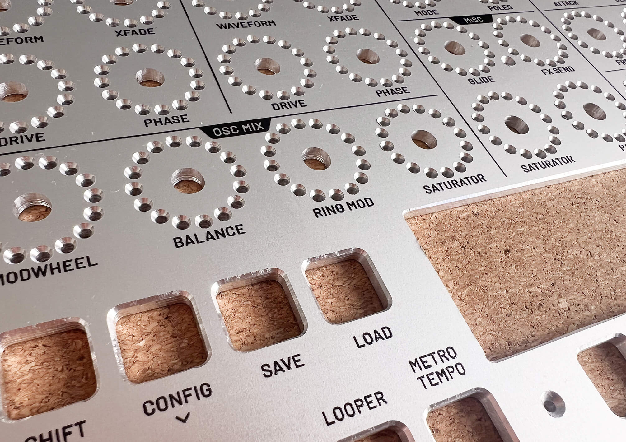 Welcome to the journey of AFOUR! This project started in 2024. We're still exploring hardware, materials, software and design. The all important sounds of AFOUR is always present, turning those 44 knobs to find out which parameters ends up in the most interesting and useful sounds.